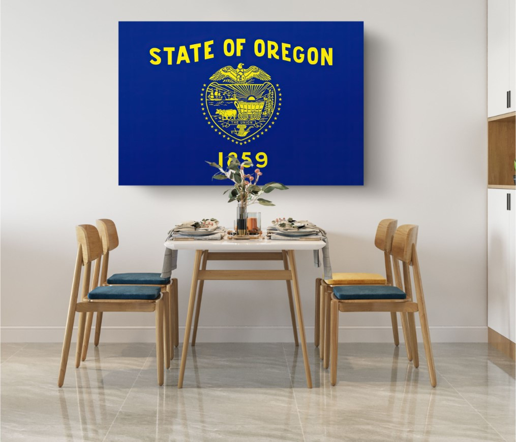 Oregon Flag USA Flags Edition Canvas Wall Art Home Decoration Customized canvas wall Art as decoration for living room, bedroom, bathroom, dining room, kitchen etc or a perfect gift for the person you cherish We use water-based latex OEM inks in our printers. Made in and shipped from the USA Our Standart Frame Thickness is 1.5-inch Premium Luxurious Cotton Canvas Material If you purchase a rolled canvas fabric keep in mind that your canvas fabric will include an extra 2.5" edging on each side. Rolled canvas refers to the canvas that has not been stretched, which means you have to stretch it yourself. Ready to Hang refers to the canvas is stretched onto a frame of wood. We do not supply any hanging