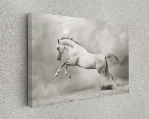 White Rearing Horse Animal Canvas Print Wall Art Home Decoration Customized canvas wall Art as decoration for living room, bedroom, bathroom, dining room, kitchen etc or a perfect gift for the person you cherish We use water-based latex OEM inks in our printers. Made in and shipped from the USA Our Standart Frame Thickness is 1.5-inch Premium Luxurious Cotton Canvas Material If you purchase a rolled canvas fabric keep in mind that your canvas fabric will include an extra 2.5" edging on each side. Rolled canvas refers to the canvas that has not been stretched, which means you have to stretch it yourself. Ready to Hang refers to the canvas is stretched onto a frame of wood. We do not supply any hanging